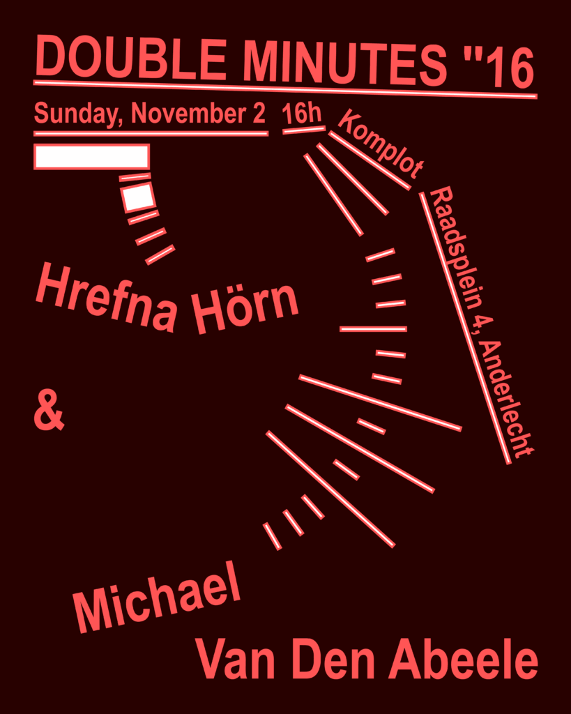 We warmly invite you to Double Minutes #16 on Sunday November 2, at Komplot, with Hrefna Hörn and Michael Van den Abeele.
