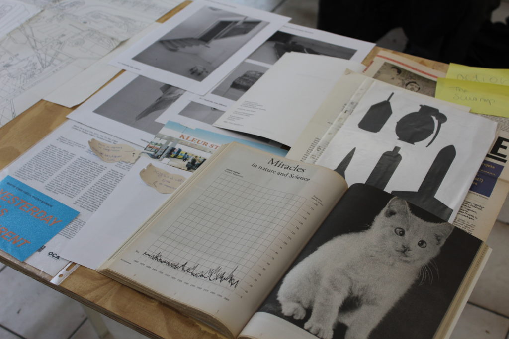 During the workshop, we delved into the archive and unearthed a series of precious relics. We then organised them in arbitrary and speculative ecosystems, placing them in swamps, cities, or forests. We then traced a palimpsest of stories in a shared mural, and ended with an email storm from the future.