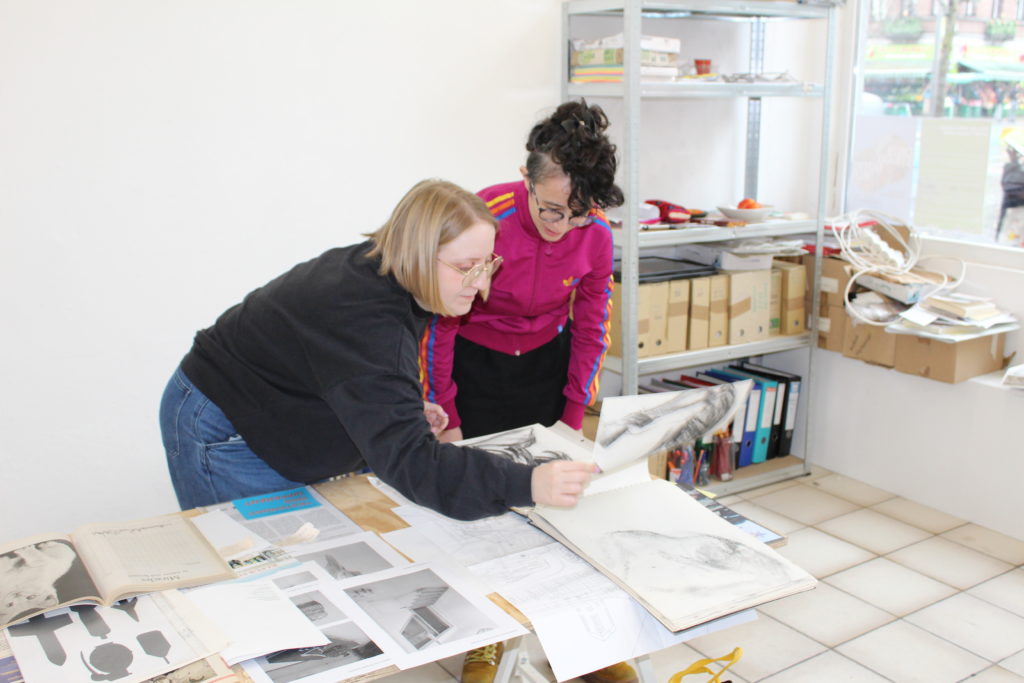 Nous avons accueilli Maria Dominguez Airola, responsable du centre de documentation de l’Iselp, ainsi que Sonia D’Alto, chercheuse et curatrice, pour un Γ©change menΓ© au cours de la rΓ©sidence avec Valentina. Nous les remercions chaleureusement.